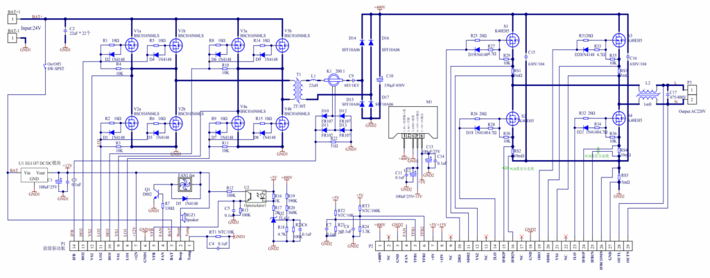 - Gate Driver: IR21844, IR2184 or HIP4082